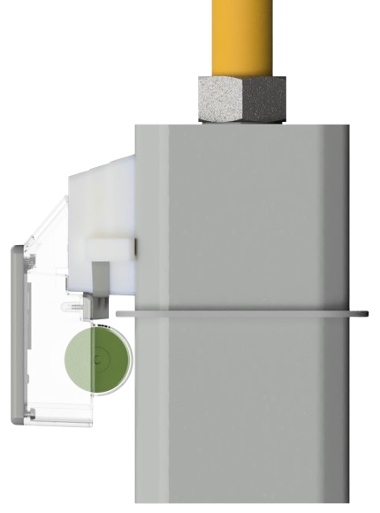Innowacyjna nakładka na gazomierz miechowy. Do odczytu wykorzystuje ona sensor pozwalający rozpoznać kształt cyfr prezentowanych na liczydle.